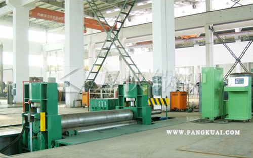 | 第四步:卷圆 卷圆工序是锅炉外型基本成型的一道基础工序。该工序主要使用三绘万能卷板机业完成。主要优点有: 1、最大可加工板厚30mm,最大板宽为2500mm,最大直径2600mm的筒体卷制。 2、加工范围大,可同时加工锥形筒体; 3、自动编程,工作效率高。 4、钢板不需要预弯,需且预弯质量和成型的一致性较高,能够很好的保证后期组对装配。 |